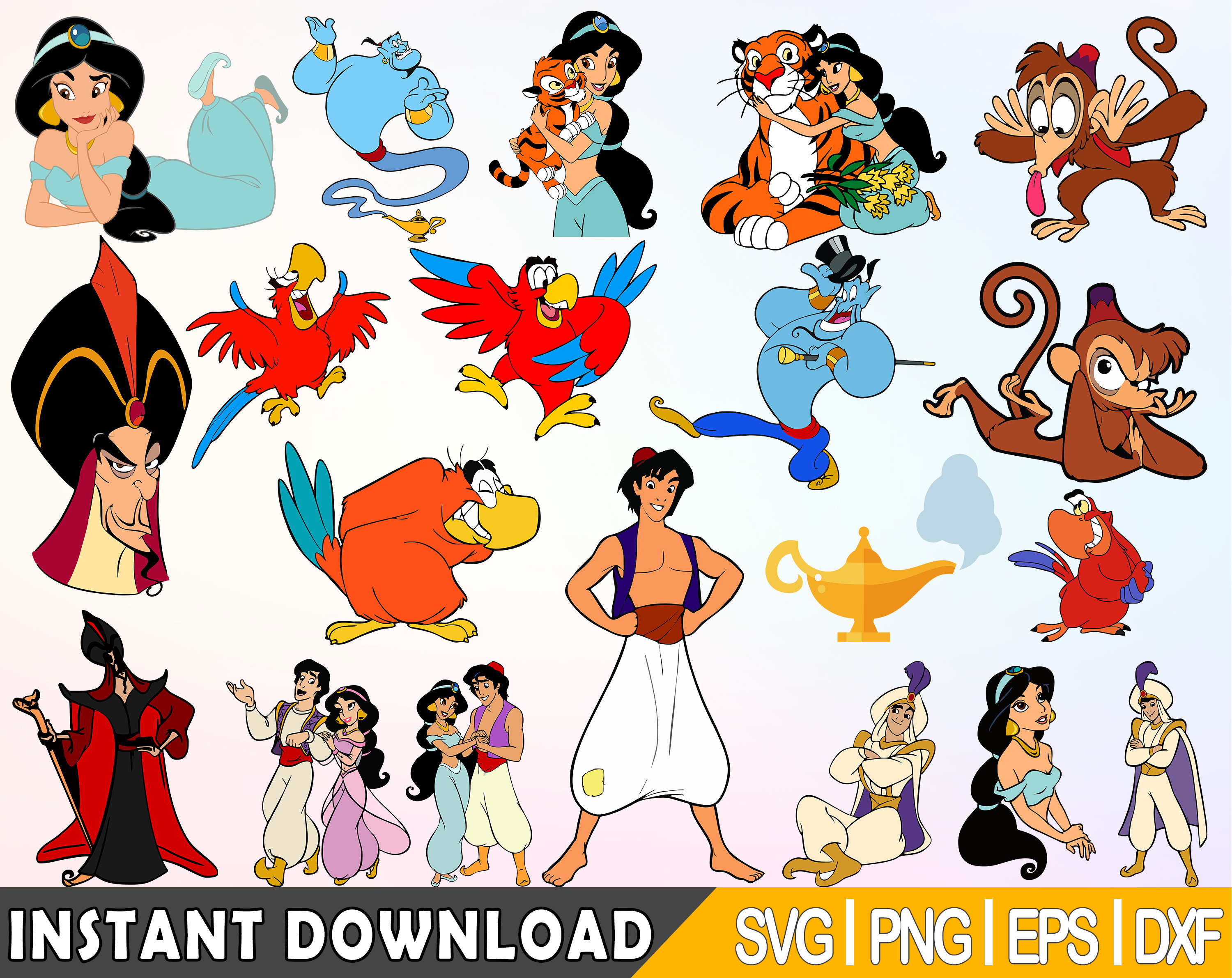 20 Aladdin Svg Bundle Princess Jasmine Cut File Genie Etsy De